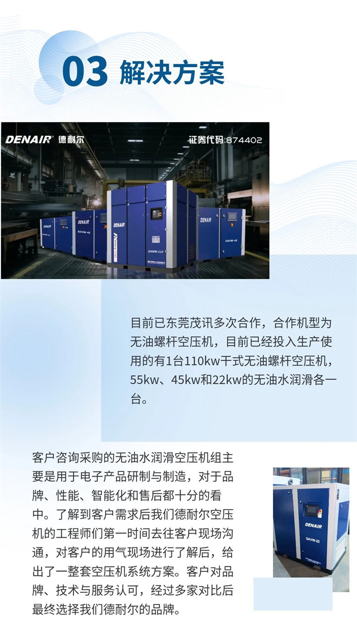 德耐爾無油水潤滑空壓機:電子精密制造的 “凈源守護者”